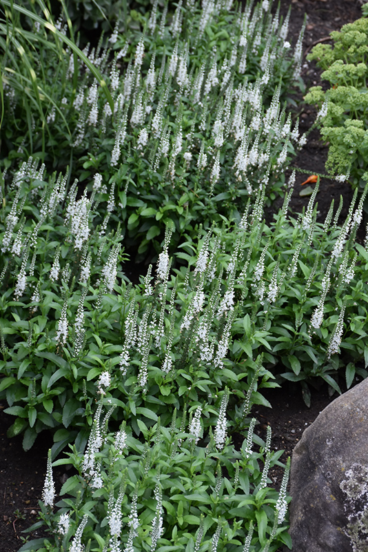 White Wands Speedwell will grow to be about 12 inches tall at maturity extending to 16 inches tall with the flowers, with a spread of 20 inches. When grown in masses or used as a bedding plant, individual plants should be spaced approximately 15 inches apart. Its foliage tends to remain dense right to the ground, not requiring facer plants in front. It grows at a medium rate, and under ideal conditions can be expected to live for approximately 8 years. As an evegreen perennial, this plant will typically keep its form and foliage year-round.