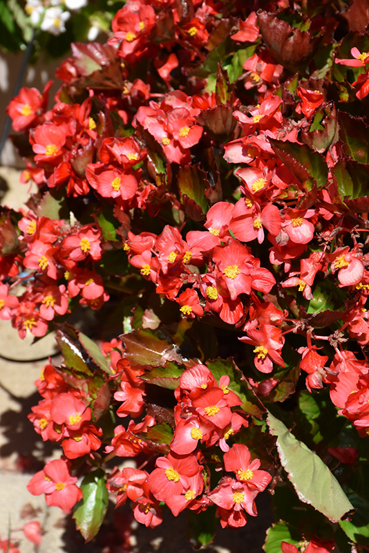 BabyWing® Red Begonia will grow to be about 12 inches tall at maturity, with a spread of 12 inches. When grown in masses or used as a bedding plant, individual plants should be spaced approximately 10 inches apart. Its foliage tends to remain dense right to the ground, not requiring facer plants in front. Although it's not a true annual, this plant can be expected to behave as an annual in our climate if left outdoors over the winter, usually needing replacement the following year. As such, gardeners should take into consideration that it will perform differently than it would in its native habitat.