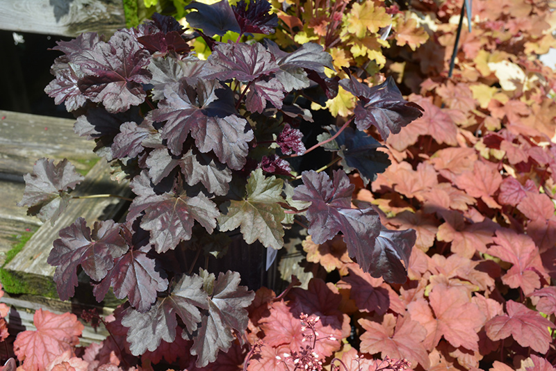 Obsidian Coral Bells is a fine choice for the garden, but it is also a good selection for planting in outdoor pots and containers. With its upright habit of growth, it is best suited for use as a 'thriller' in the 'spiller-thriller-filler' container combination; plant it near the center of the pot, surrounded by smaller plants and those that spill over the edges. Note that when growing plants in outdoor containers and baskets, they may require more frequent waterings than they would in the yard or garden.