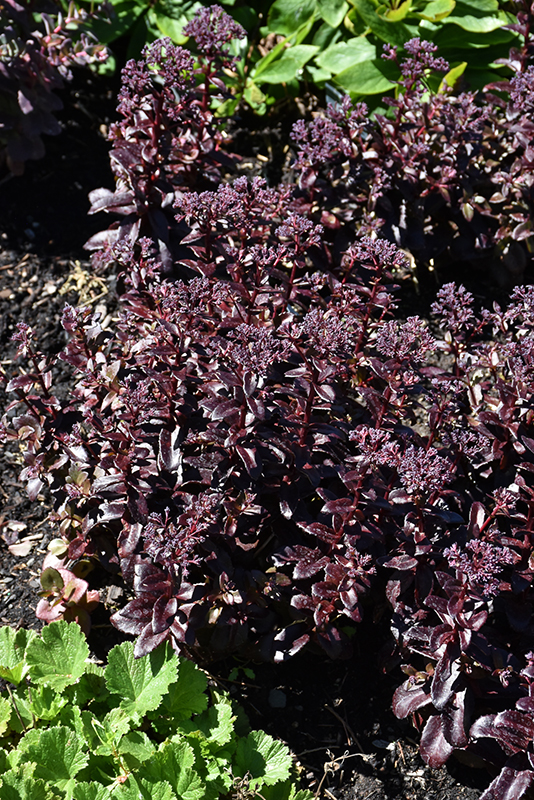 Dark Magic Stonecrop will grow to be about 12 inches tall at maturity, with a spread of 20 inches. When grown in masses or used as a bedding plant, individual plants should be spaced approximately 16 inches apart. It grows at a fast rate, and under ideal conditions can be expected to live for approximately 15 years. As an herbaceous perennial, this plant will usually die back to the crown each winter, and will regrow from the base each spring. Be careful not to disturb the crown in late winter when it may not be readily seen!